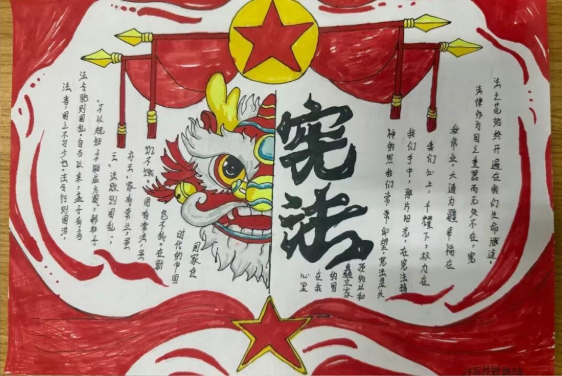 学院面向学生同步开展多元化学习实践:宪法主题手抄报创作中,学子以画笔为媒,将宪法知识与法治理念融入版面设计,形成校园法治文化风景线;组织学生走进法治长廊,通过观摩展板、聆听讲解,从法律知识与典型案例中提升实景学习实效。