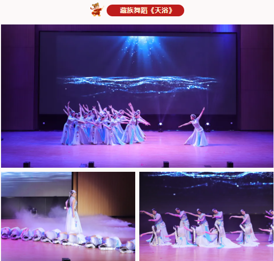 裙摆翻飞如雪域流云,舞姿圣洁似清泉润心。舞蹈《天浴》以藏族风情演绎人与自然的和谐共生,恰似学院初创时的纯粹初心——摒弃浮躁、深耕细作,在校园里搭建起大国工匠的摇篮,为技能人才培育筑牢根基。