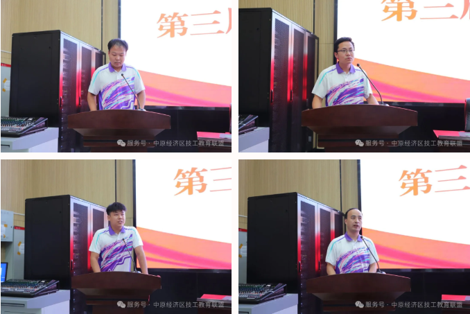 参赛学生代表任庆立、参赛教师代表宁国平、指导教师代表冯朋飞、裁判员代表胡绪志依次登台表态发言,分别表达了对本次赛事所抱持的坚定决心。