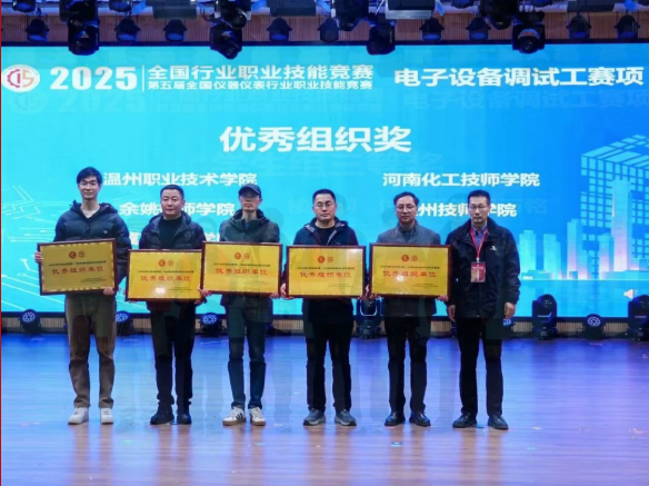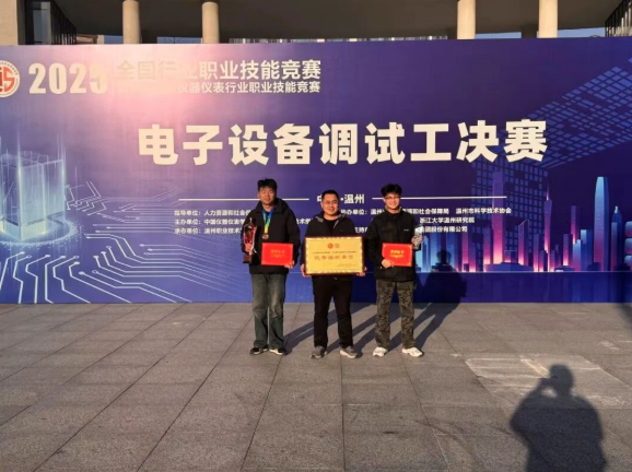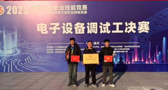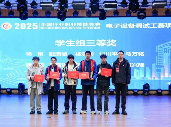 近日,2025-2026年全国行业职业技能竞赛——第五届全国仪器仪表行业职业技能竞赛电子设备调试工决赛在浙江温州圆满落幕。我院智能控制工程系学生组选手张洪帅、杨硕凭借扎实的专业功底与精湛的技艺,经过激烈⻆逐分别荣获一等奖(铜牌,第三名)与三等奖(第九名)。同时,我院被授予“优秀组织单位奖”,充分彰显了我院在高技能人才与产教融合方面的扎实成效。