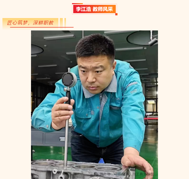 李江浩,中共党员,高级讲师,高级技师,全国技术能手,河北省技术能手、邯郸工匠,现任冀南技师学院汽车工程系专业教师,同时担任河北省技工教育和职业培训教学指导委员会委员(新能源与交通运输类)。深耕汽车行业二十载,他实现了从企业技术专家到职教先锋的完美转型,是名副其实的“双师型”教师典范。